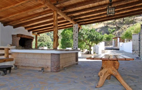 En el exterior podemos disfrutar de una barbacoa y merendero construido de madera.