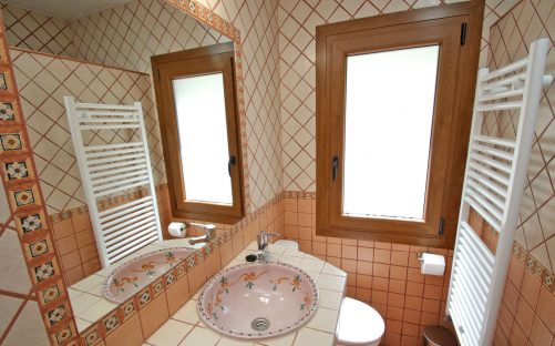 Hay cinco dormitorios dobles (cuatro en la planta superior), cada uno con su propio baño completo, incluido secador de toallas, todos ellos muy cómodos y funcionales.